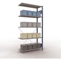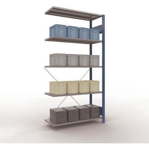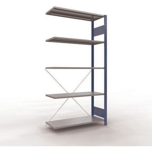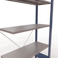 Sistema de estante robusto e bastante completo, com acabamento elegante em tinta epóxi cinzenta ou azul. Prateleiras integrais em chapa de aço capazes de suportar mercadorias de várias dimensões. Estante industrial de montagem fácil e rápida por encaixe, sem necessidade de ferramentas específicas. Estante facilmente extensível acrescentando um ou mais elementos adicionais.