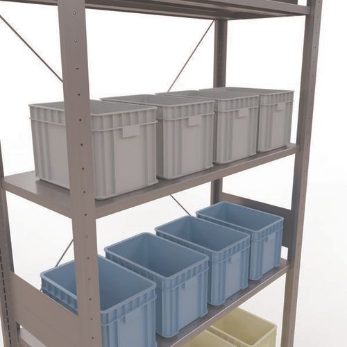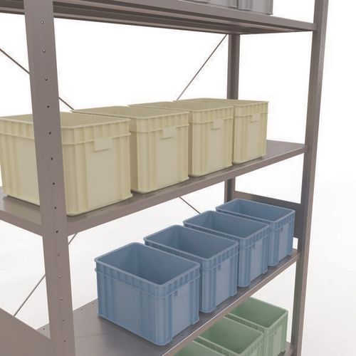 Estante de armazém robusta com acabamento galvanizado, ultrarresistente a ambientes húmidos. Prateleiras integrais em chapa de aço capazes de suportar mercadorias de várias dimensões. Estante industrial de montagem fácil e rápida por encaixe, sem necessidade de ferramentas específicas. Estante facilmente extensível acrescentando um ou mais elementos adicionais. Distância entre perfurações: 25 mm. Altura da primeira perfuração: 50 mm. Altura da primeira perfuração: 22,5 mm.