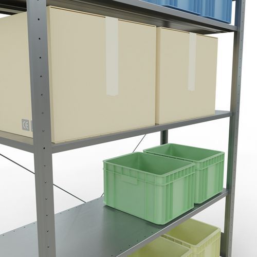 Estante de armazém robusta com acabamento galvanizado, ultrarresistente a ambientes húmidos. Prateleiras integrais em chapa de aço capazes de suportar mercadorias de várias dimensões. Estante industrial de montagem fácil e rápida por encaixe, sem necessidade de ferramentas específicas. Estante facilmente extensível acrescentando um ou mais elementos adicionais. Distância entre perfurações: 25 mm. Altura da primeira perfuração: 50 mm. Altura da primeira perfuração: 22,5 mm.