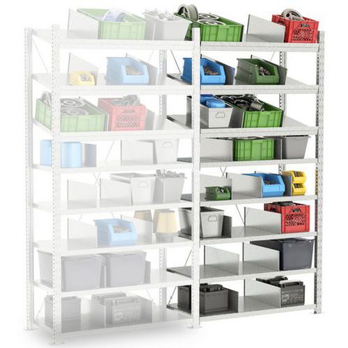 A gama Adaptiv da Manorga é a solução de estantes em aço reconhecida como a mais evolutiva e personalizável do mercado, graças à vasta gama de dimensões, capacidades de carga e acessórios. Com a sua vasta gama de acessórios, a Adaptiv adapta-se a todas as suas necessidades graças ao sistema de configuração evolutivo e personalizável. Pretende aumentar o limite de peso máximo de que dispõe? A Adaptiv permite-lhe fazê-lo de forma rápida e fácil graças aos seus reforços opcionais que permitem aumentar a carga em 200%, passando de 150 kg para 330 kg com um simples reforço da prateleira. Assuma o controlo do seu espaço de armazenamento com os elementos adicionais, únicos e personalizáveis, que podem ser ligados à unidade inicial para criar comprimentos de armazenamento compostos por diferentes travessas. As estantes estão em conformidade com as normas FEM 10.2.06 relativas a produtos de armazenamento estabelecidas pela União Europeia.
