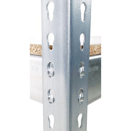 Estante industrial simples e robusta, ideal para o armazenamento de mercadorias de carga intermédia. Prateleira melaminada perfeita para o armazenamento de pequenas peças a granel e todo o tipo de recipientes. Prateleira em aglomerado (MDF) revestida por uma resina de colagem térmica. Acabamento resistente a impactos e todo o tipo de ambientes: zincado e epóxi cinzento/azul. Prateleira de armazém de montagem fácil, sem necessidade de recorrer a técnicos ou ferramentas específicas.