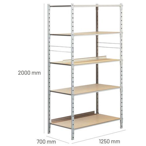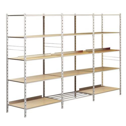 Estante de armazém robusta em aço de estrutura tubular soldada. Estante estável sem recurso a cruzetas para permitir o acesso em face simples ou dupla face. Montante com perfurações em C de 40x20x10x1,5 mm. Acabamento bonito em tinta epóxi azul ou cinzenta: resistência a impactos e riscos. Pés de plástico na parte inferior dos montantes: conferem boa estabilidade ao conjunto e conservam o pavimento. Prateleiras tubulares totalmente soldadas com 4 conetores de fixação nas extremidades. Igualmente adequada para armazéns, garagens e oficinas.