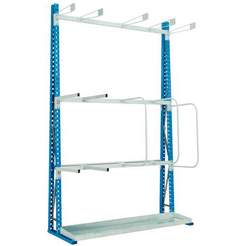 Estante de face simples e de dupla face para o armazenamento vertical de mercadorias compridas. Economia de espaço com dupla face: otimização do armazenamento em espaços reduzidos. Estrutura sólida em aço, de fácil extensão com 1 ou mais kits de elementos adicionais. Armazene perfis, vigas e outros produtos altos e compridos!