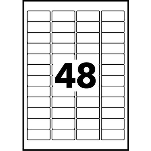 Etiqueta autocolante branca ultrarresistente – impressão a laser, N.º de etiquetas/folha: 48 Etiqueta autocolante branca ultrarresistente – impressão a laser, N.º de etiquetas/folha: 48