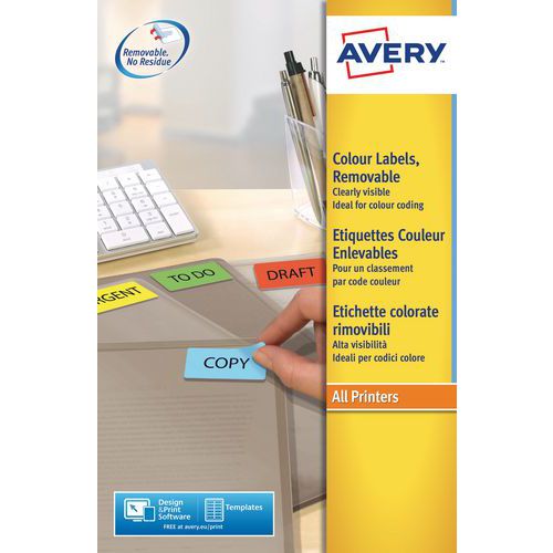 Etiqueta de cor reposicionável Avery – Impressão a laser/jato de tinta e fotocopiadora Etiqueta de cor reposicionável Avery – Impressão a laser/jato de tinta e fotocopiadora