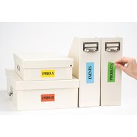 Etiqueta de cor pré-cortada para uma identificação clara e rápida. Remove-se sem deixar vestígios e adere perfeitamente mesmo após várias utilizações. Compatível com todas as impressoras: laser, jato de tinta ou fotocopiadoras.