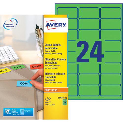 Etiqueta de cor reposicionável Avery – Impressão a laser/jato de tinta e fotocopiadora