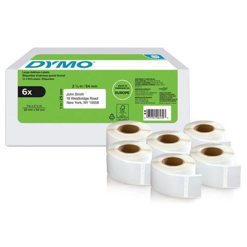 Etiqueta de devolução autocolante, 6 rolos LabelWriter – Dymo®, Fundo cor: Branco, Comprimentos: 25 mm