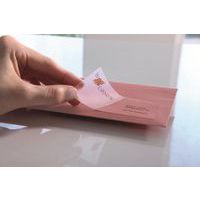 Etiqueta transparente: assim que é colada ao envelope, apenas o texto permanece visível.