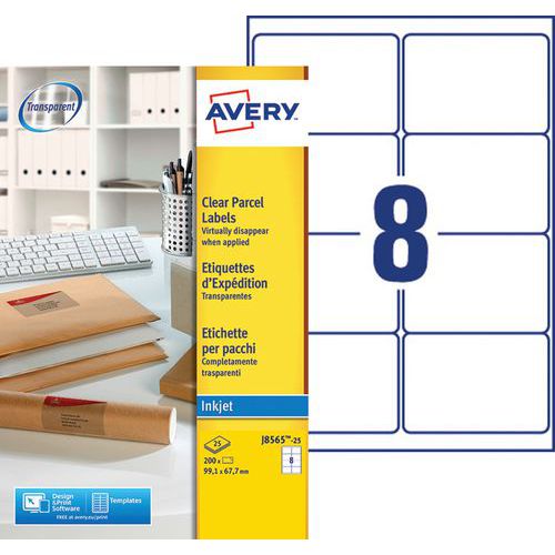 Etiqueta de expedição transparente Avery – impressão a jato de tinta