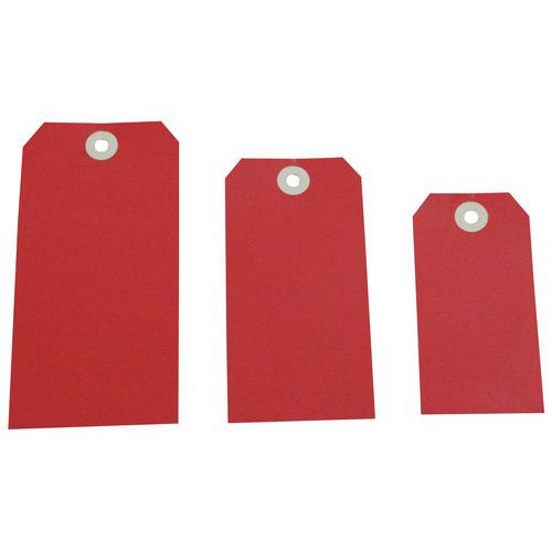 Cartão ultrarresistente. Fixação através de fio metálico. Etiqueta a ilhó reforçado.