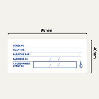 | Nome do artigo | Etiqueta de rastreio alimentar pré-impressa – 98 x 40 mm – em rolo, N.º de etiquetas: 300 |
