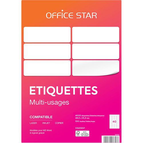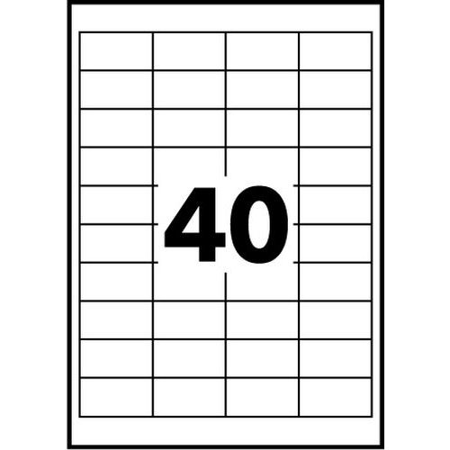 Etiqueta multiusos, N.º de etiquetas/folha: 40, N.º de etiquetas: 4000, Comp. Etiqueta: 48.5 mm Etiqueta multiusos, N.º de etiquetas/folha: 40, N.º de etiquetas: 4000, Comp. Etiqueta: 48.5 mm