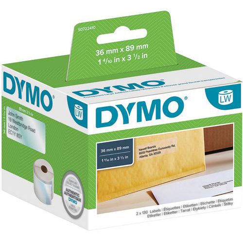Etiquetas para etiquetadoras Dymo LabelWriter. Adequa-se a diversas aplicações em escritório, armazém ou estaleiro. Etiqueta Authentic Dymo Label