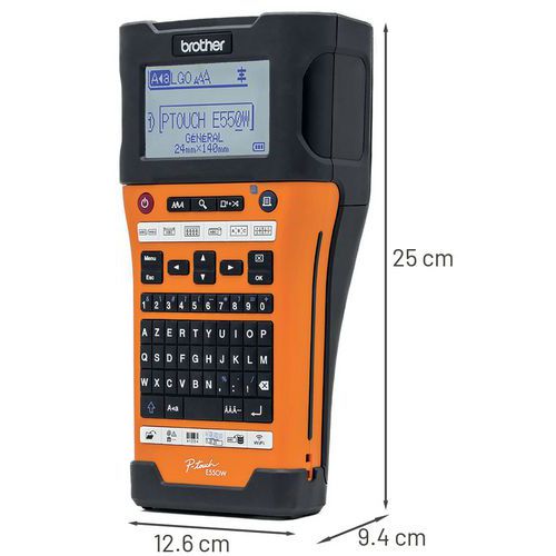 | Nome do artigo | Etiquetadora Brother PT-E550WVP AZERTY, Alimentação: Bateria, Comp.: 25 cm, Largura: 12.6 cm, Altura: 9.4 cm |