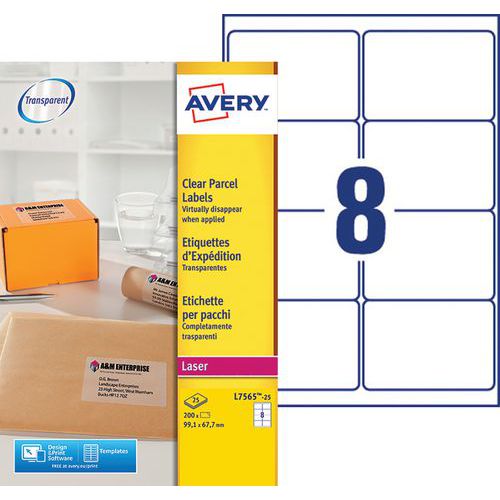 Etiquetas para impressão a laser Avery Transparentes, N.º de etiquetas/folha: 8, N.º de etiquetas: 200