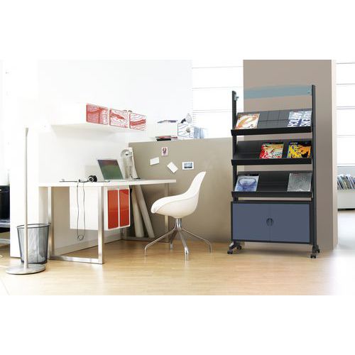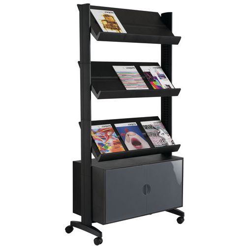 | Nome do artigo | Expositor móvel para desdobráveis com 3 prateleiras e 1 bloco – EasyDisplays, N.º de compart./coluna: 3 |