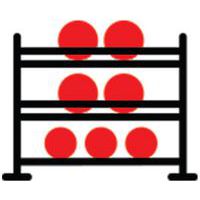- Expositor tubular ergonómico com parte frontal inclinada.