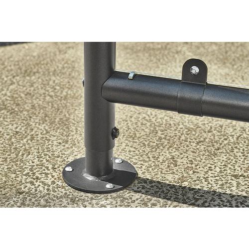 Importante: o módulo de extensão não pode ser instalado isoladamente, tendo de ser adicionado ao módulo precedente (inclui apenas 2 montantes). Capacidade para 6 bicicletas + 2 lambretas/motos ou 9 bicicletas.