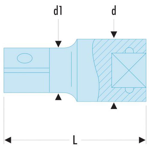 | Dados técnicos | d [mm]: 23, d1 [mm]: 16,5, C [mm]: 75, Quadrado []: 1/2, [g]: 130, |