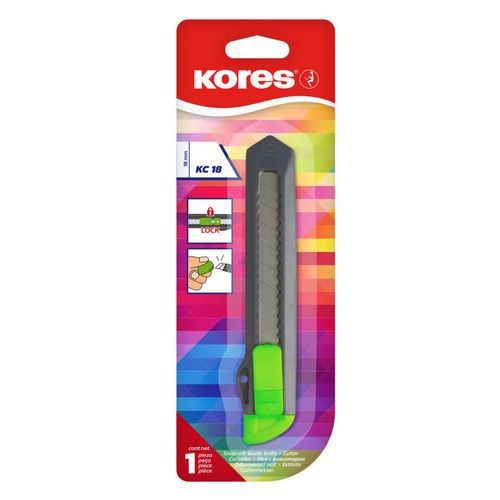 Faca de segurança em plástico Neon – Kores, Lâminas material: Aço, Utilização: Corte, Lâmina retráctil: sim