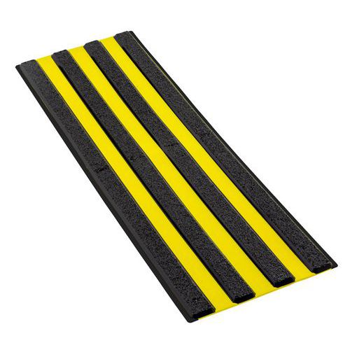 Faixa de orientação de PMR em poliuretano, perfeita para utilização no interior e no exterior. Permite que as pessoas cegas e com deficiências visuais sejam alertadas para os perigos que podem encontrar nos seus percursos. Duas cores: proporcionam um contraste natural para uma melhor visibilidade para pessoas com deficiências visuais.