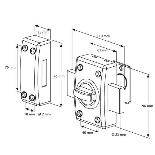 | Nome do artigo | Fechadura de porta padrão com botão e canhão CLK Twins – Abus, Caixa largura: 61 mm, Caixa altura: 96 mm |