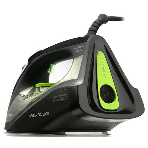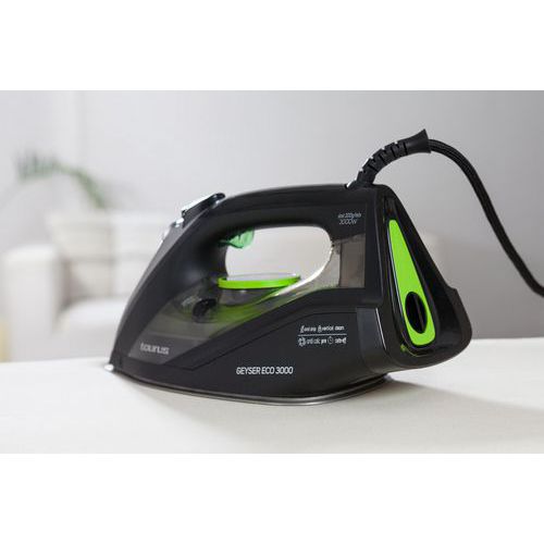 - Ferro de engomar a vapor 3000 W Geyser Eco 3000 Taurus com uma potência máxima de 3000 W.