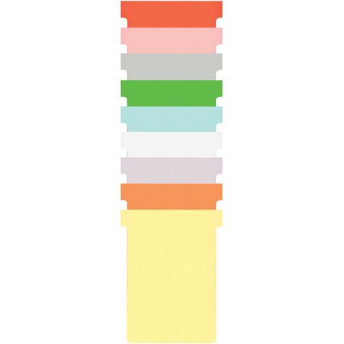 As fichas T de índice 3 estão disponíveis em inúmeras dimensões para lhe permitir registar informações resumidas ou extremamente detalhadas. Graças à ampla variedade de cores, pode facilmente atribuir um código de cor às suas equipas, aos seus projetos e/ou aos seus recursos e, assim, ter uma visão geral da situação.