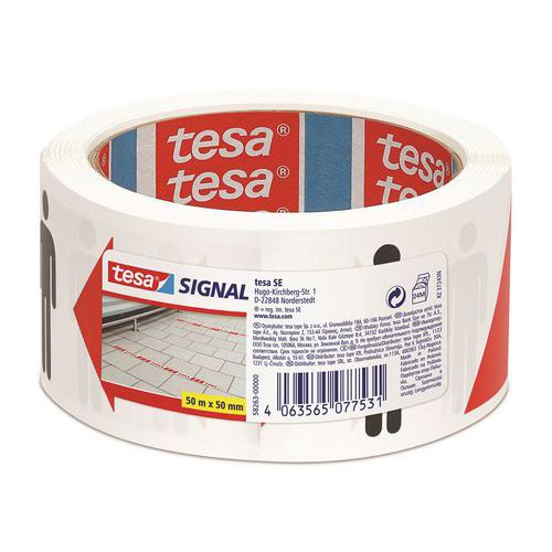 | Nome do artigo | Fita adesiva de distanciamento social – tesa® signal, Material: Polipropileno, Comp.: 50 m, Largura: 50 mm |