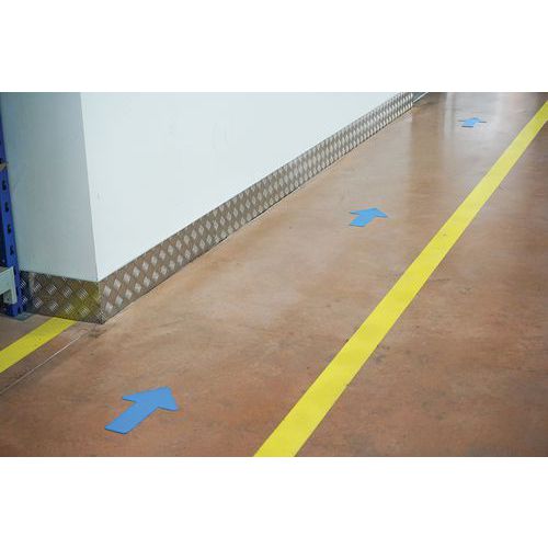 - Fita adesiva de marcação do pavimento em forma de seta, 3 vezes mais espessa (400 μm) e mais resistente do que outros produtos semelhantes no mercado.