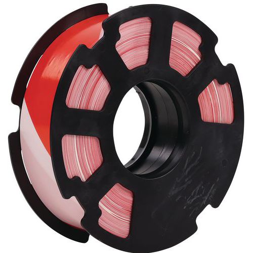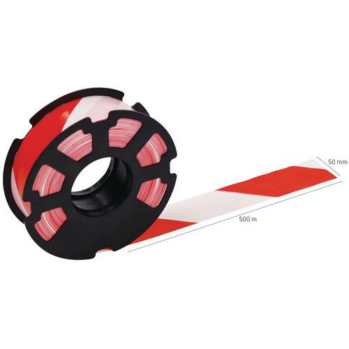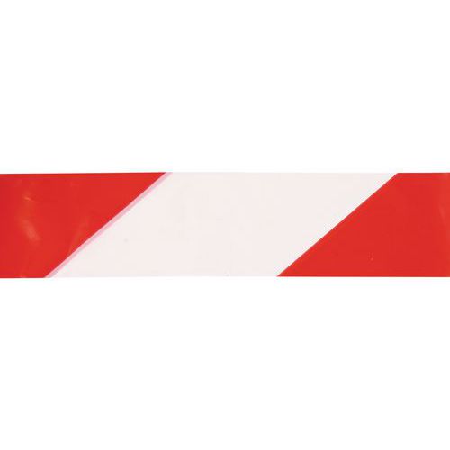 Fita em polietileno fabricado por extrusão. Grande resistência à tensão e à estiragem antes da rotura. Com as cores vermelho e branco alternadas na diagonal. Fita impressa frente/verso com tinta de água. Mandril em plástico preto. Isenta de metais pesados. Muito boa resistência ao tempo e respeito pelo ambiente. Fabricado na UE Garantia do cliente : 10 anos