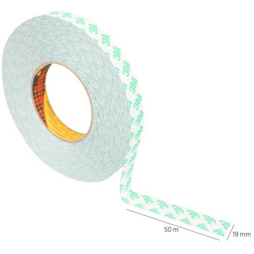 Fita dupla face, Largura: 19 mm, Comprimentos: 50 m, Cores: Branco, Massa adesiva: Acrílico