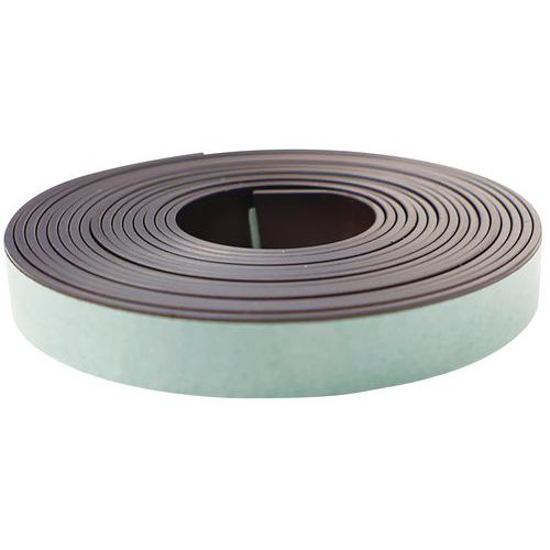 Fita magnética que permite fixar pequenos objetos em superfícies metálicas.