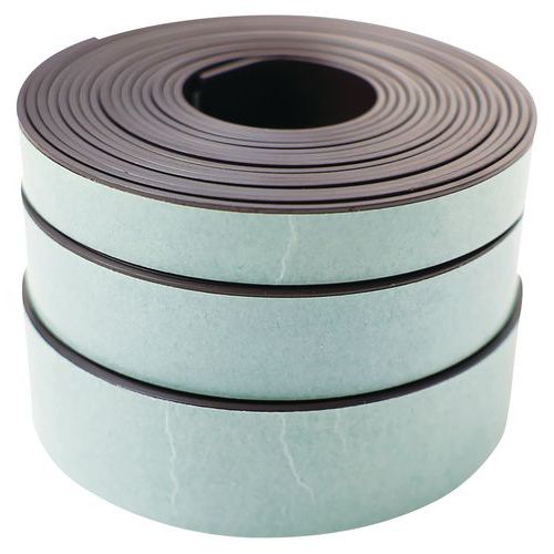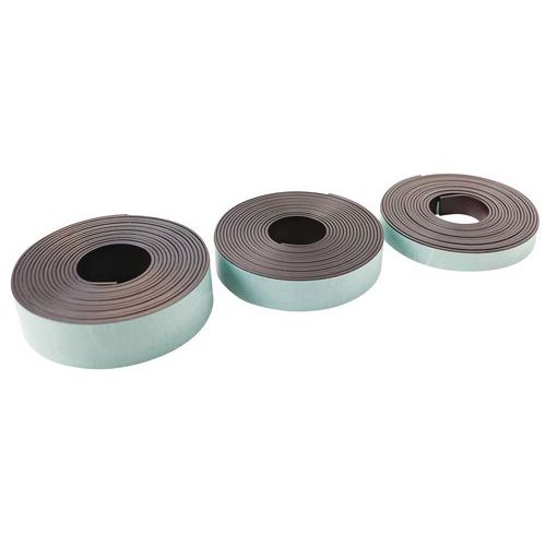 Fita com íman de fixação adesiva: a face adesiva fixa-se na parte de trás dos seus painéis, documentos ou objetos, a face com íman posiciona-se na superfície metálica.