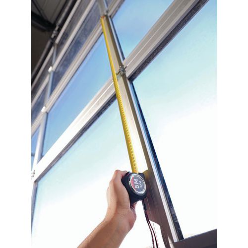 - Fita métrica amarela mate frente e verso com revestimento de nylon, 10 vezes mais resistente durante a utilização e de leitura fácil.