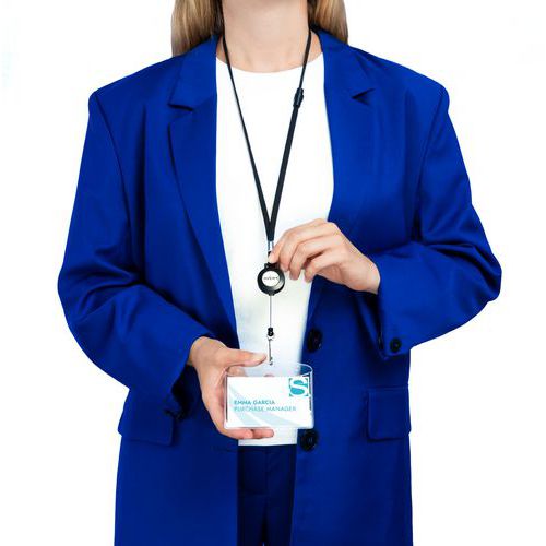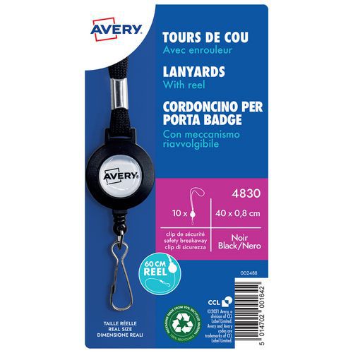 | Nome do artigo | Fita para o pescoço preta com enrolador – Avery, Cores: Preto, Comp.: 40 cm, Largura: 1 cm |