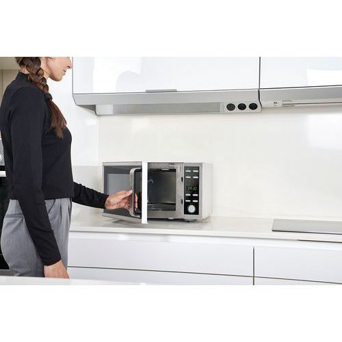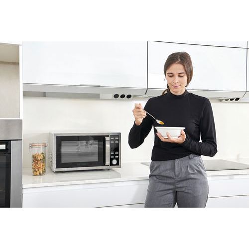 - Forno micro-ondas 900 W com 10 níveis de potência e 9 programas de cozedura.