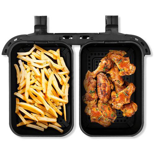 - Fritadeira Air Fry Digital Duo sem óleo com 2 cestos com revestimento antiaderente.