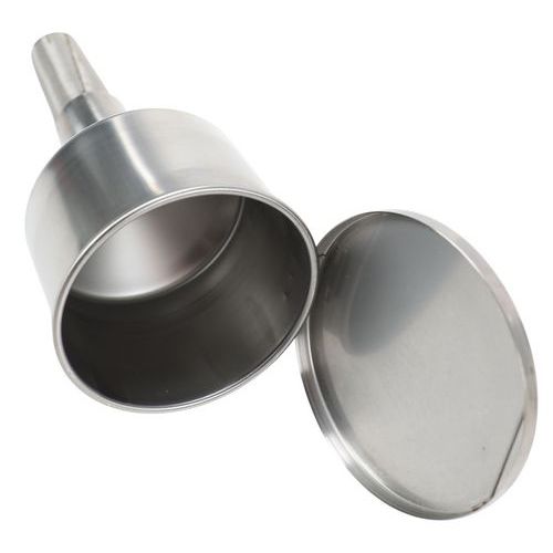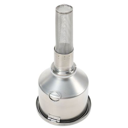 | Nome do artigo | Funil inox, Material: Inox, Cores: Cinzento, Ø total: 140 mm, Ø superior: 140 mm, Haste Ø: 45 mm |