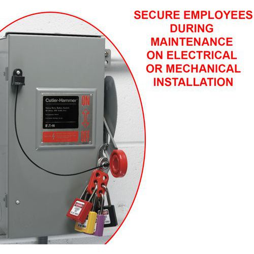 - Ideal para garantir a segurança de equipamentos de vários trabalhadores, o gancho impede a utilização do equipamento durante reparações ou ajustes.