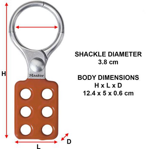- O gancho de segurança em alumínio Master Lock n.º 417 tem um diâmetro de garra interior de 38 mm e pode conter até seis cadeados.