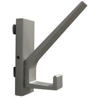 - Gancho duplo em alumínio fixo em travessa de alumínio com revestimento de resina 100% poliéster cozido em forno.