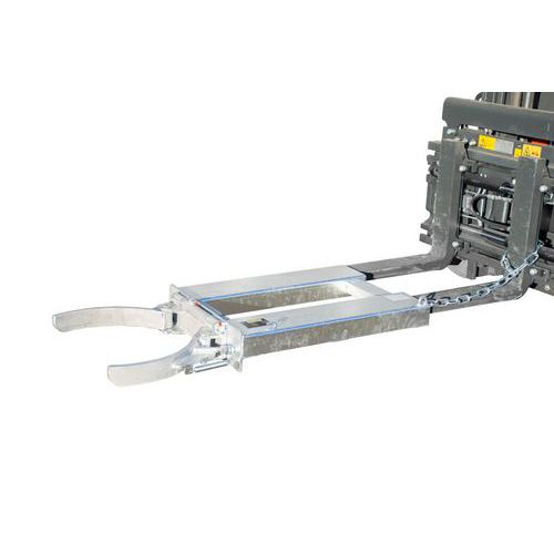 - Garra para bidões própria para o transporte de bidões com rolos e ranhuras através de um empilhador.