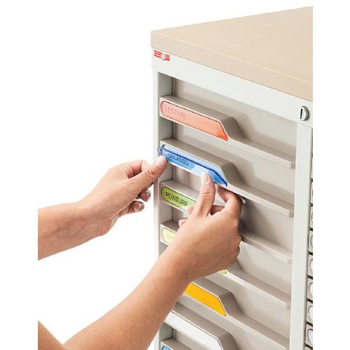 Gaveta de 3 cm branca ergonómica com protetor de etiquetas – E-Clen