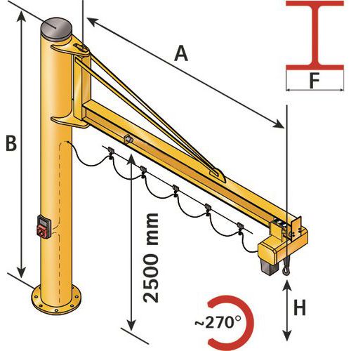 Grua de bandeira triangular de coluna - Capacidade 250 kg