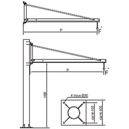 Grua de flecha triangular giratória – capacidade de 100 kg, Ângulo de rotação: 210 °, Base Ø: 500 mm Grua de flecha triangular giratória – capacidade de 100 kg, Ângulo de rotação: 210 °, Base Ø: 500 mm