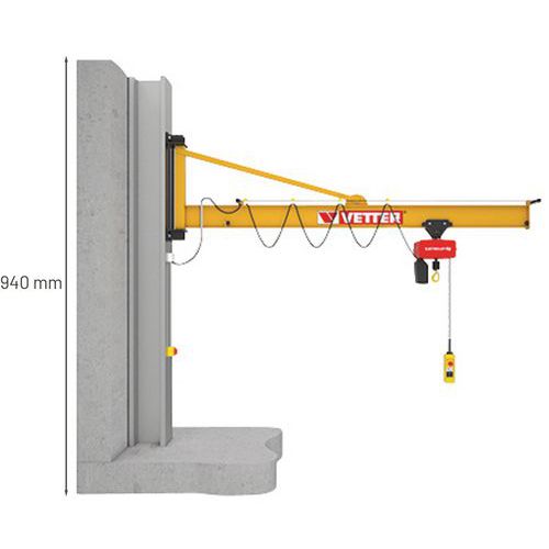 Grua de parede, Ângulo de rotação: 170 °, Capacidade: 250 kg, Alcance: 2 m, Modelo: Grua de parede MTL