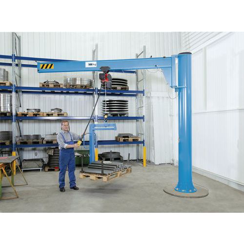 O braço de elevação pode facilmente ser deslocado manualmente (fabrico leve, classificação conforme a norma EN 13001 HC2 S2 HD2).