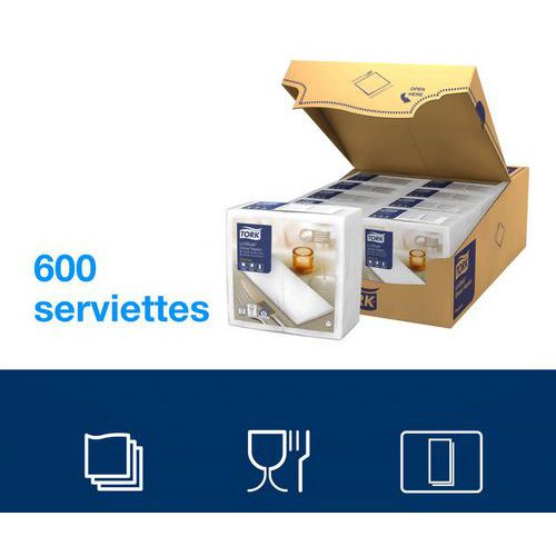| Nome do artigo | Guardanapos Dinner brancos, dobragem 1/8, 12x50 guardanapos – Tork LinStyle®, Material têxtil: Papel |